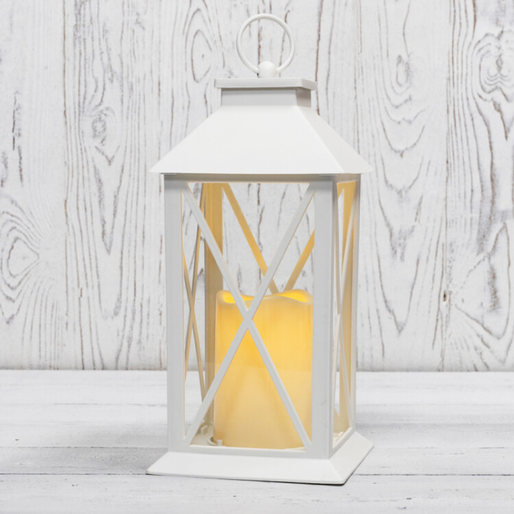 Декоративный фонарь со свечой 14x14x29 см, белый корпус, теплый белый цвет свечения 513-046