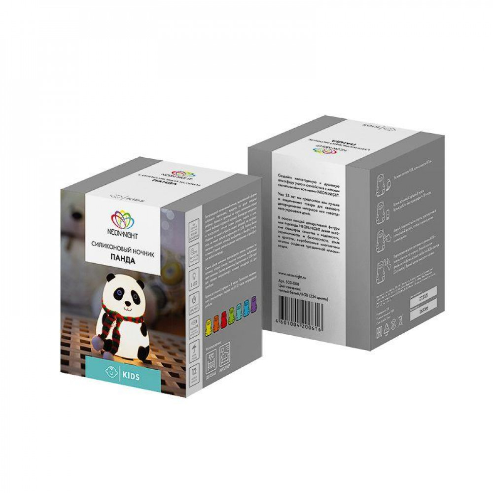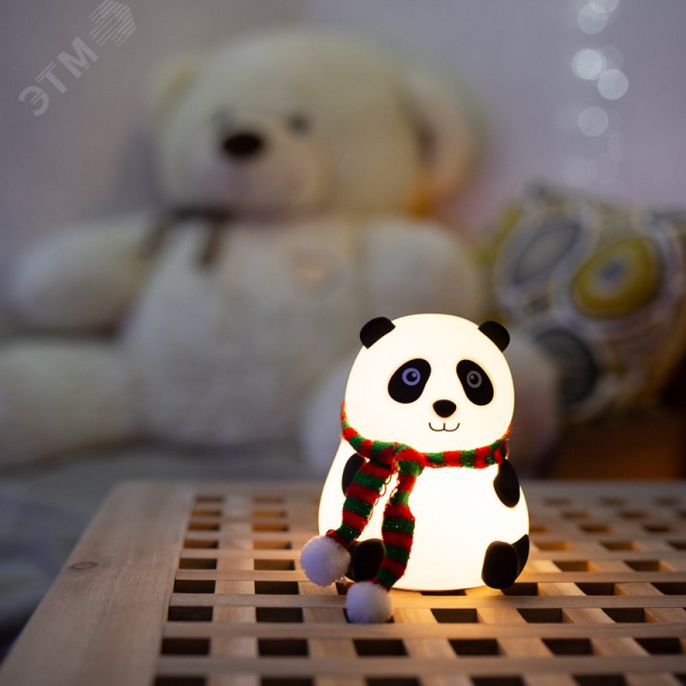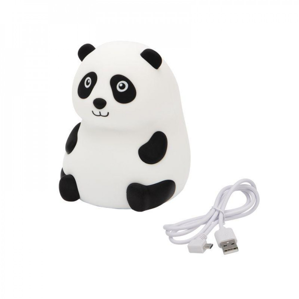 Силиконовый ночник ''Панда'' выполнен из мягкого материала, приятного на ощупь. Забавный персонаж придется по душе каждому ребенку, станет его лучшим другом, который поможет быстро и крепко заснуть. Ночник светится теплым белым цветом, плавно меняет оттенки RGB-диодов или светится одним цветом из 256 вариантов. Изделие не нагревается, не имеет неприятного запаха, острых углов и опасных деталей. Ночник заряжается через USB-порт, одного объема аккумулятора хватает на 12—15 часов.