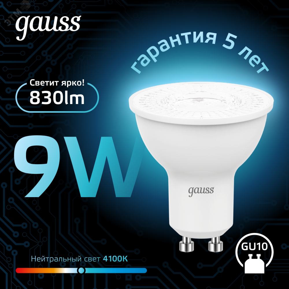 Лампа MR16 9W 830lm 4100K GU10 LED 1/10/100 101506209, Лампа светодиодная