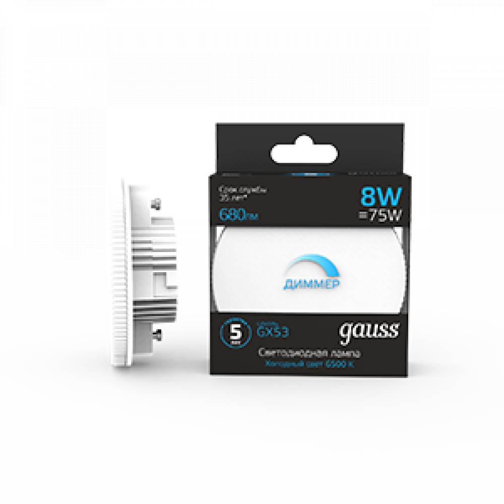 Описание Лампа GX53 8W 680lm 6500K диммируемая LED 1/10/100 108408308-D