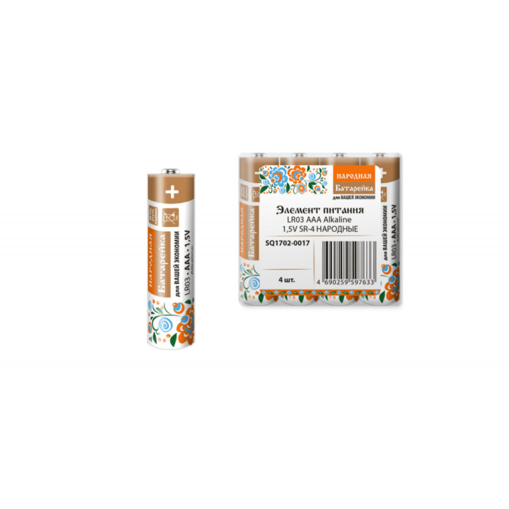 Элемент питания LR03 AAA Alkaline 1,5V SR-4 Народный SQ1702-0017, Батарейка стандартная