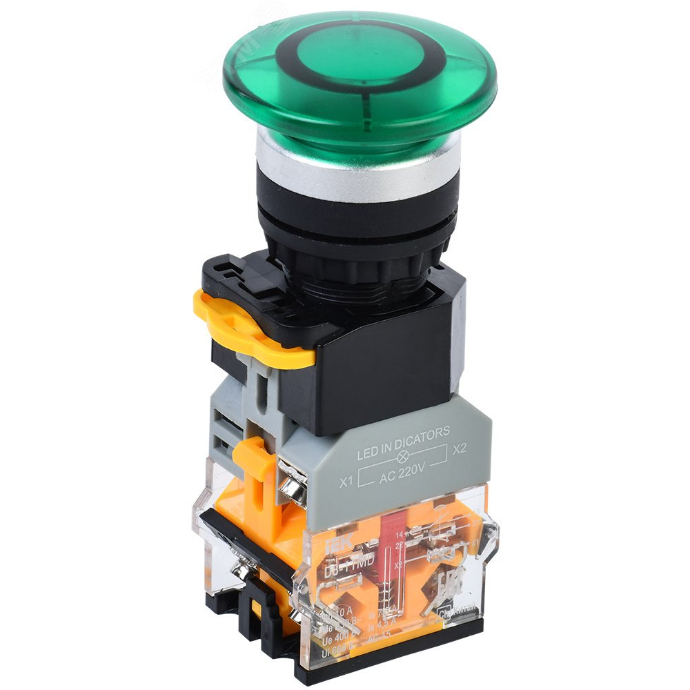 Доставка Кнопка D8-11MD "Грибок" d=22мм 1з+1р с подсвет. зеленая BBG30-11MD-3-12-K06