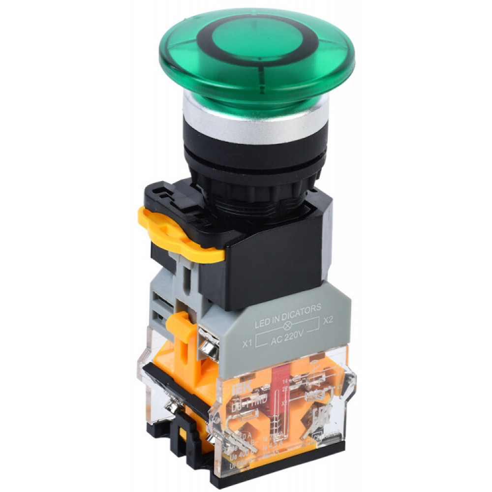 Кнопка D8-11MD "Грибок" d=22мм 1з+1р с подсвет. зеленая BBG30-11MD-3-12-K06, Кнопка