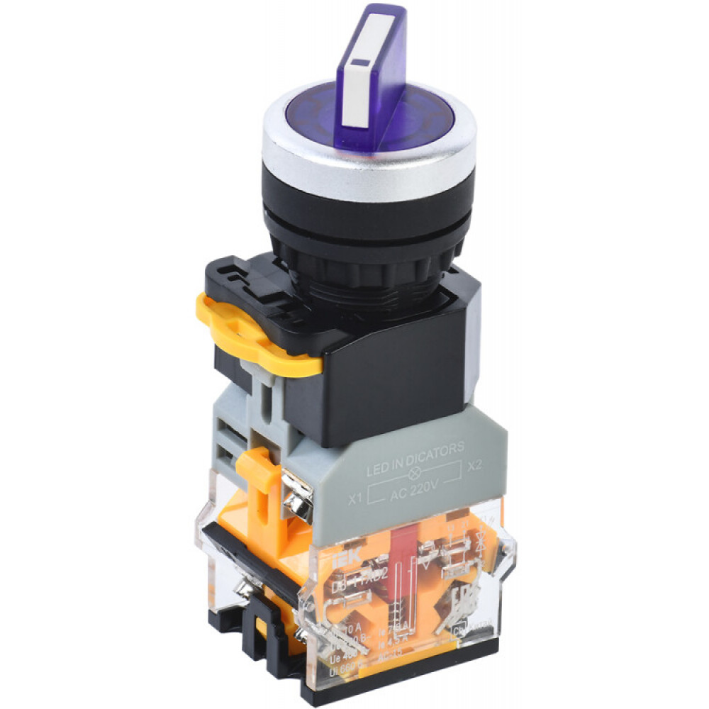 Описание Переключатель D8-11XD2 2 полож. 1з+1р с подсвет. синий BSW30-11XD2-3-14-2-K07