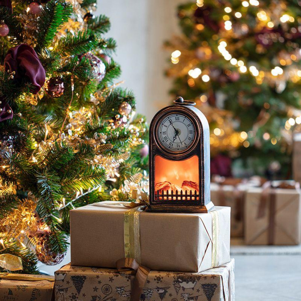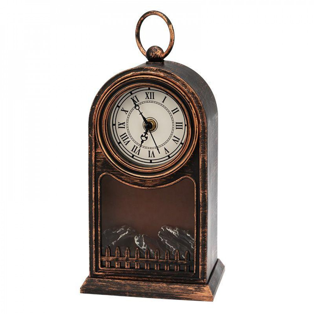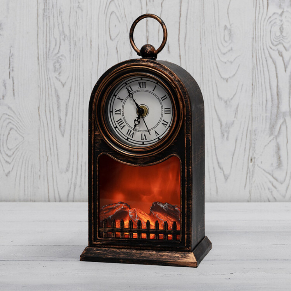 Доставка Светодиодный камин Старинные часы с эффектом живого огня 14,7x11,7x25 см, бронза, батарейки 2хС (не в комплекте) USB 511-021