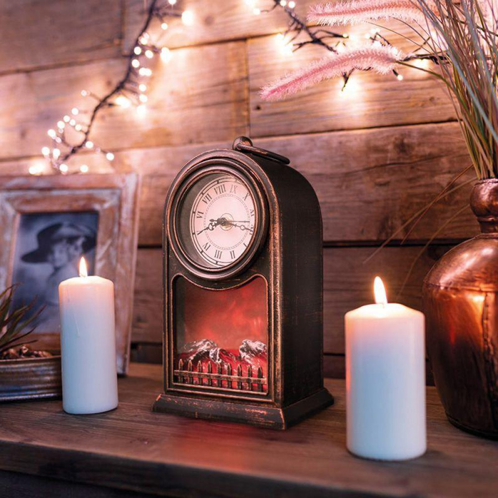 Светодиодный камин Старинные часы с эффектом живого огня 14,7x11,7x25 см, бронза, батарейки 2хС (не в комплекте) USB 511-021