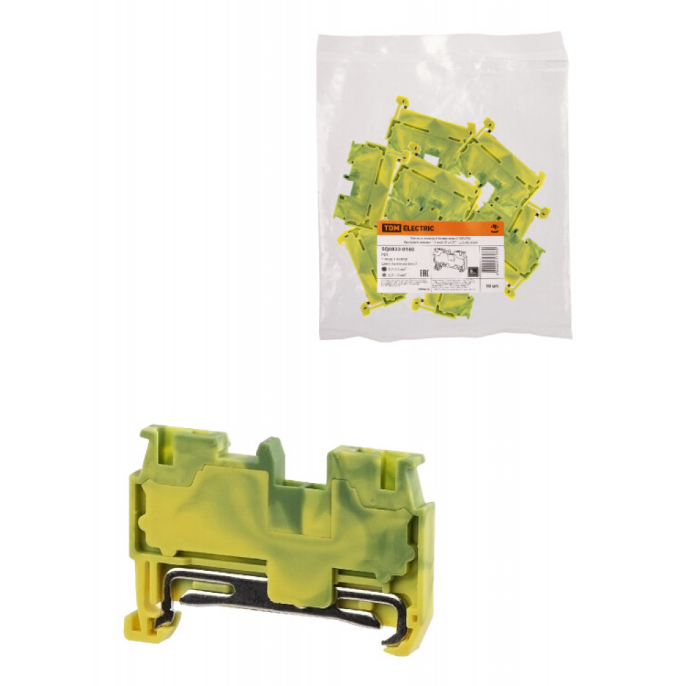 Зажим клеммный безвинтовой ЗКБ PEN быстрого зажима 1,5 мм2 (Ph-C PT 1,5/S-PE) SQ0822-0160, Клемма на DIN-рейку