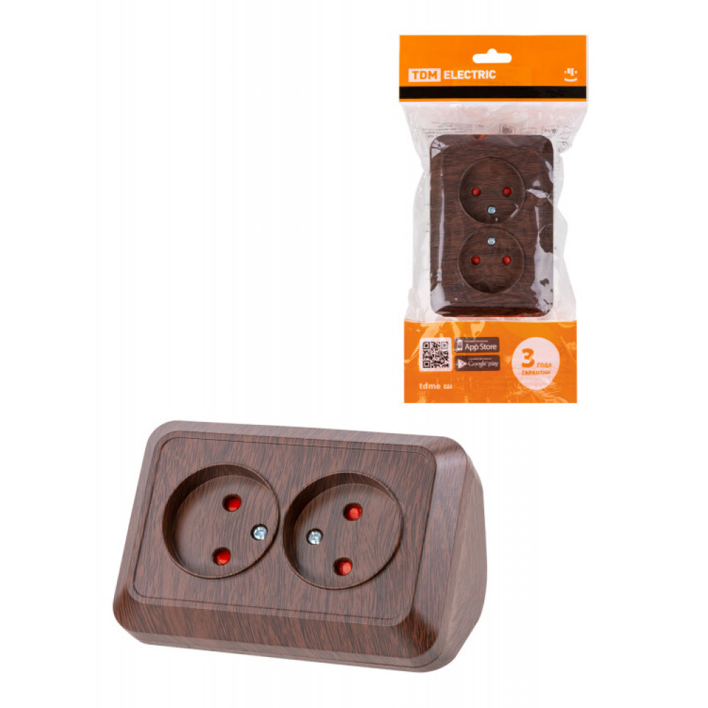Описание Розетка угловая двойная 2П открытой установки с з/ш IP20 250В 10А бук "Ладога" SQ1801-0342