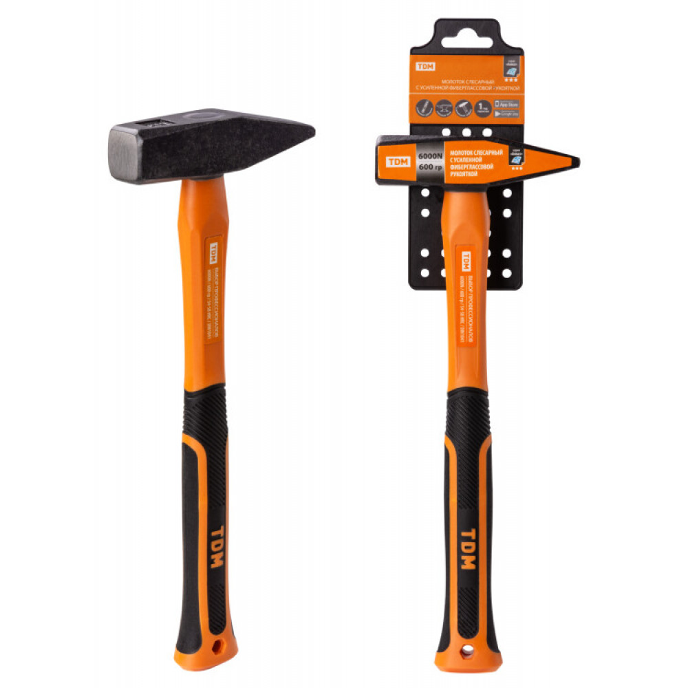 Описание Молоток слесарный, 600 гр, кованый, с усилен. прорезиненной фиберглассовой рукояткой "Алмаз" SQ1036-0114