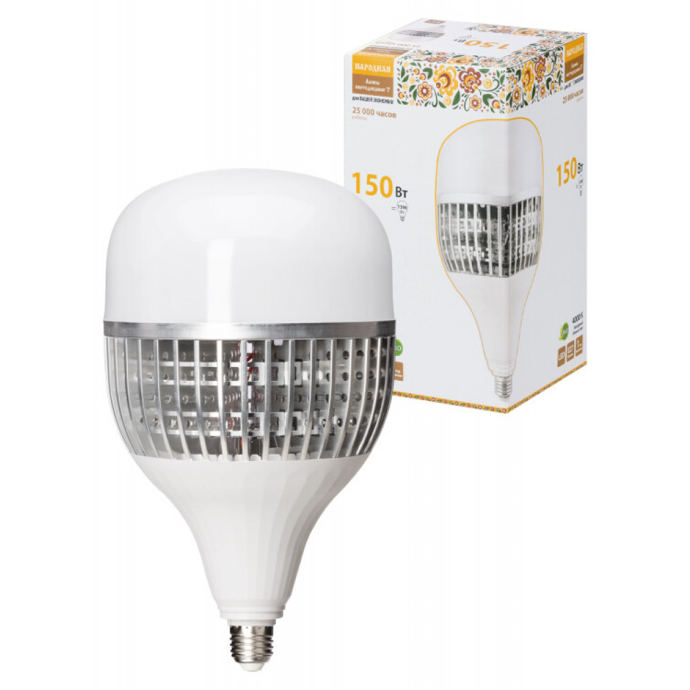Описание Лампа светодиодная T-150 Вт-230 В-4000 К–E27 (170x295 мм) Народная SQ0340-1640