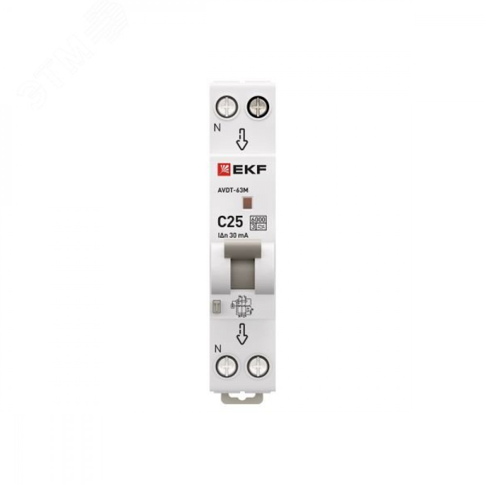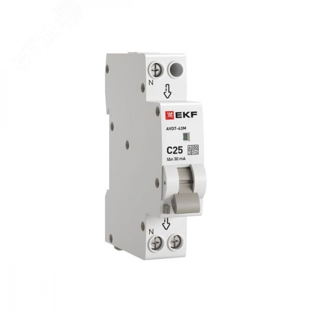 Автоматический выключатель дифференциального тока АВДТ-63 EKF PROхima представляет аппарат, сочетающий функции автоматического выключателя с электромеханическим или электронным УЗО. При обнаружении автоматическим выключателем в защищаемом участке сети тока утечки (повреждения) на землю или сверхтока (тока перегрузки иликороткого замыкания) происходит срабатывание устройства, приводящее к отключению защищаемой сети. Возможна коммутация алюминиевым и медным проводником.Автоматический выключатель дифференциального тока малогабаритный АВДТ-63М EKF PROхima представляет аппарат, сочетающий функции автоматического выключателя с электронным УЗО типа АС в компактном корпусе шириной один модуль. При обнаружении автоматическим выключателем на защищаемом участке сети тока утечки (повреждения) на землю или сверхтока (тока перегрузки или короткого замыкания) происходит срабатывание устройства, приводящее к отключению защищаемой сети. Особое отличие дифференциальных автоматических выключателей EKF с электронным УЗО – в наличии блока защиты от перенапряжения. Возможна коммутация алюминиевым и медным проводом.