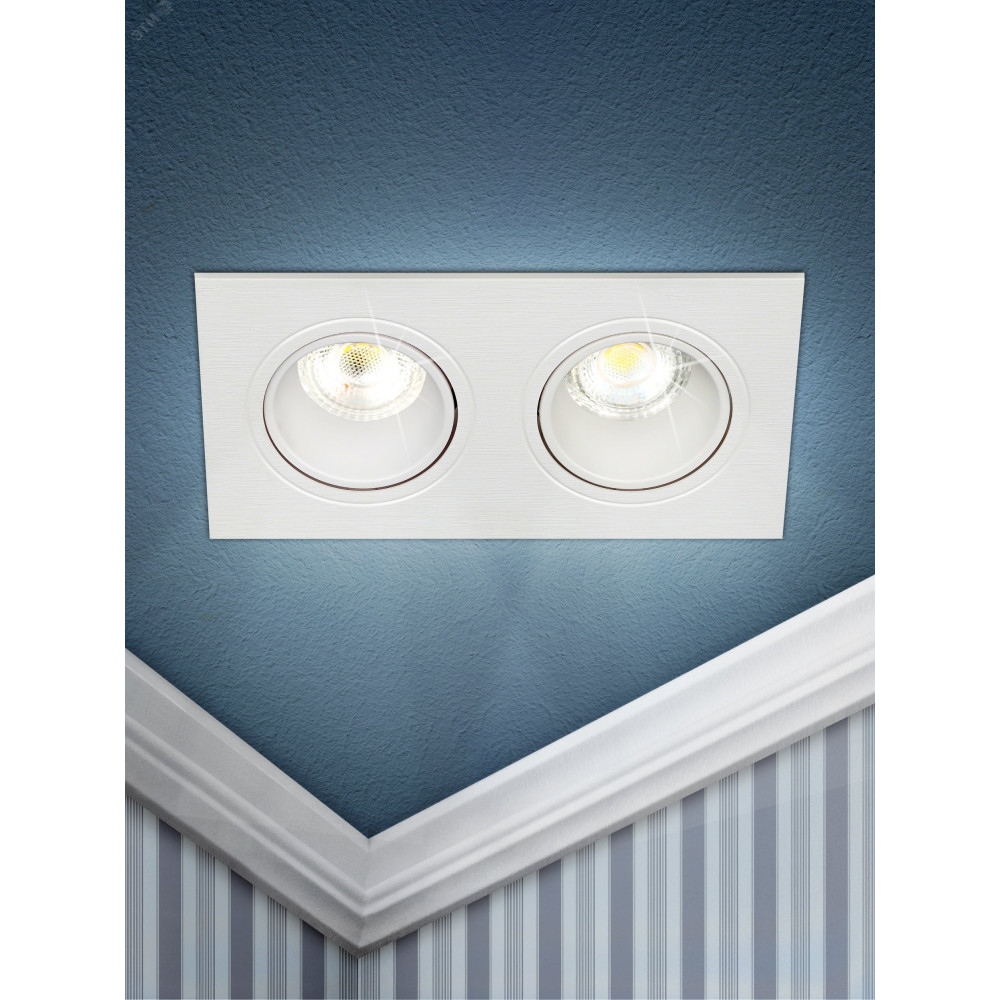 Встраиваемый светильник декоративный KL90-2 WH, цвет светильника белый, цоколь GU5.3 Лампа в комплект не входит. Для основного и акцентного освещения жилых и офисных помещений.