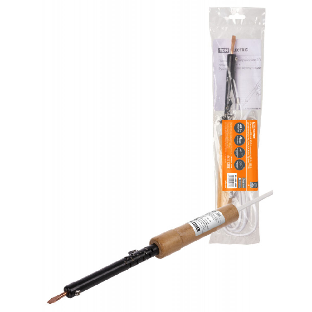 Описание Паяльник ПД-40, ЭПСН, мощность 40 Вт, 230 В, деревянная ручка, плоское жало, "Гранит"