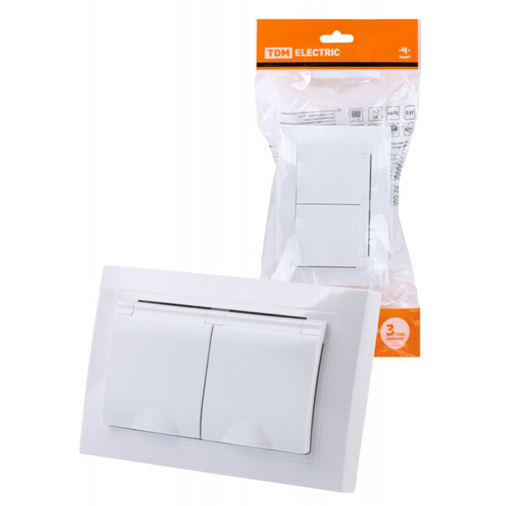 Доставка Розетка двойная 2П+З с защ. шт. и крышкой 16А 250В IP44 белая "Таймыр" SQ1814-0076