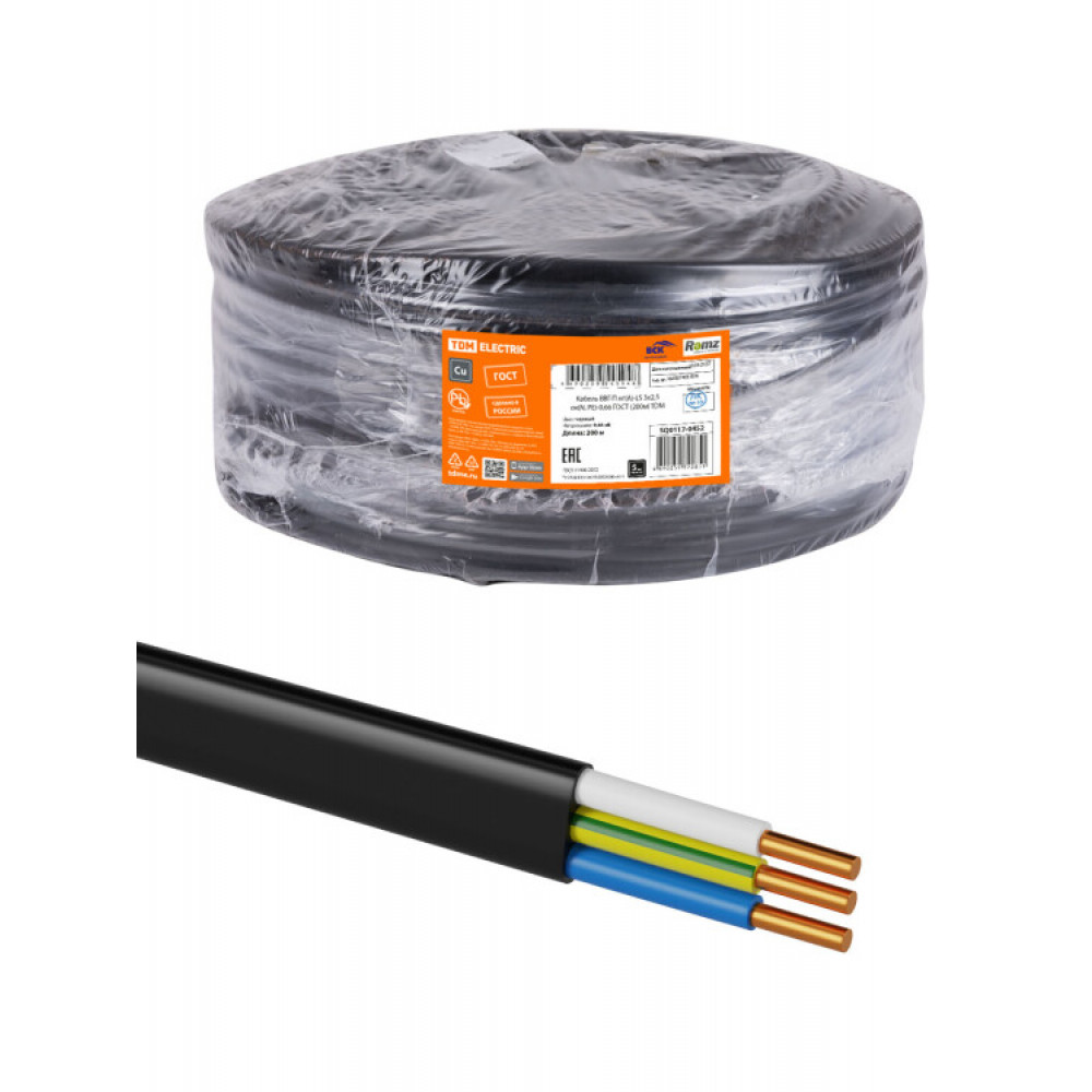 Описание Кабель ВВГ-П нг(А)-LS 3х2,5 ок(N, PE)-0,66 ГОСТ (200м) SQ0117-0452