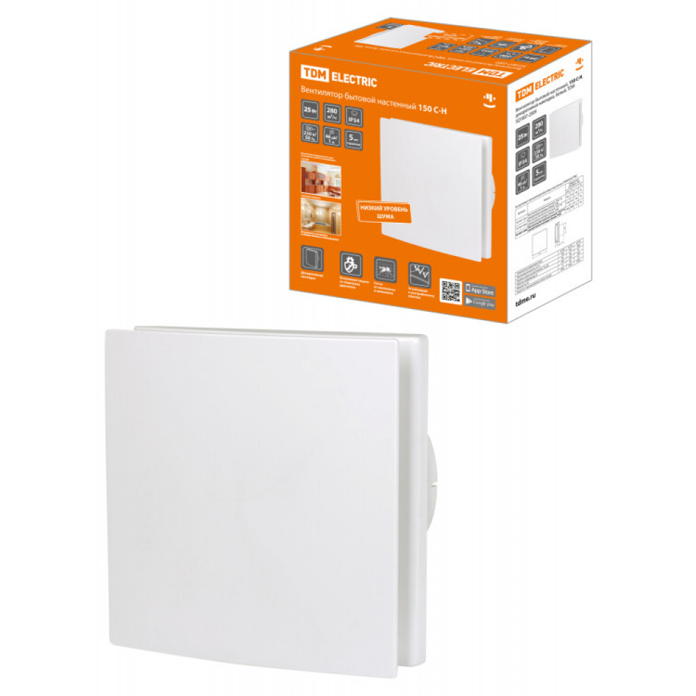 Описание Вентилятор бытовой настенный, 150 С-Н, декоративная накладка, белый, SQ1807-2009