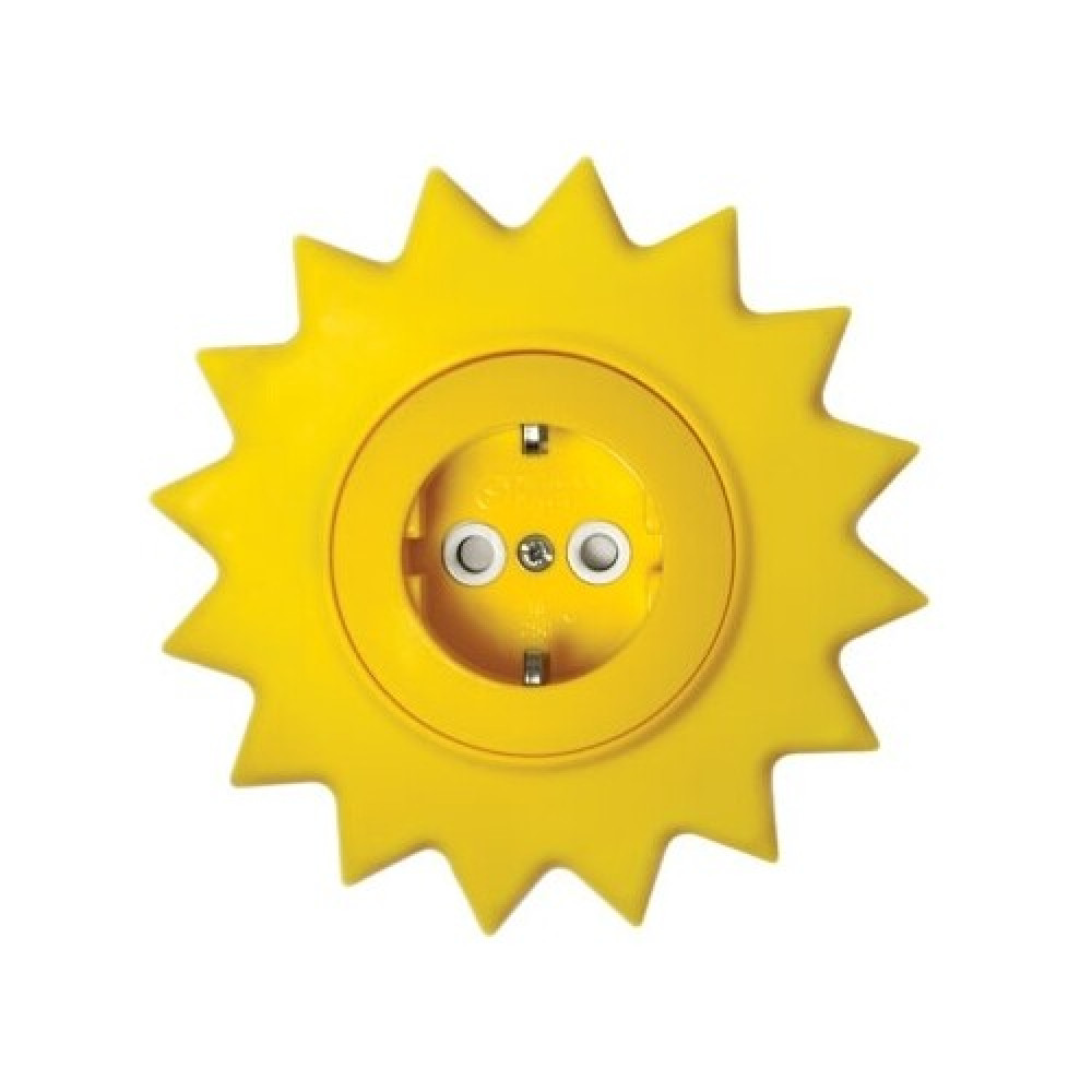 Описание Розетка одноместная KRANZ HAPPY Солнце скрытой установки с заземлением и защитными шторками, желтая KR-78-0813