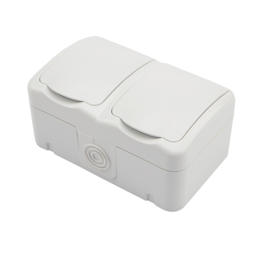 Описание Блок горизонтальный 2 розетки (керамика) Mini OG IP54 с заземлением, о/у, белый KRANZ KR-78-0607