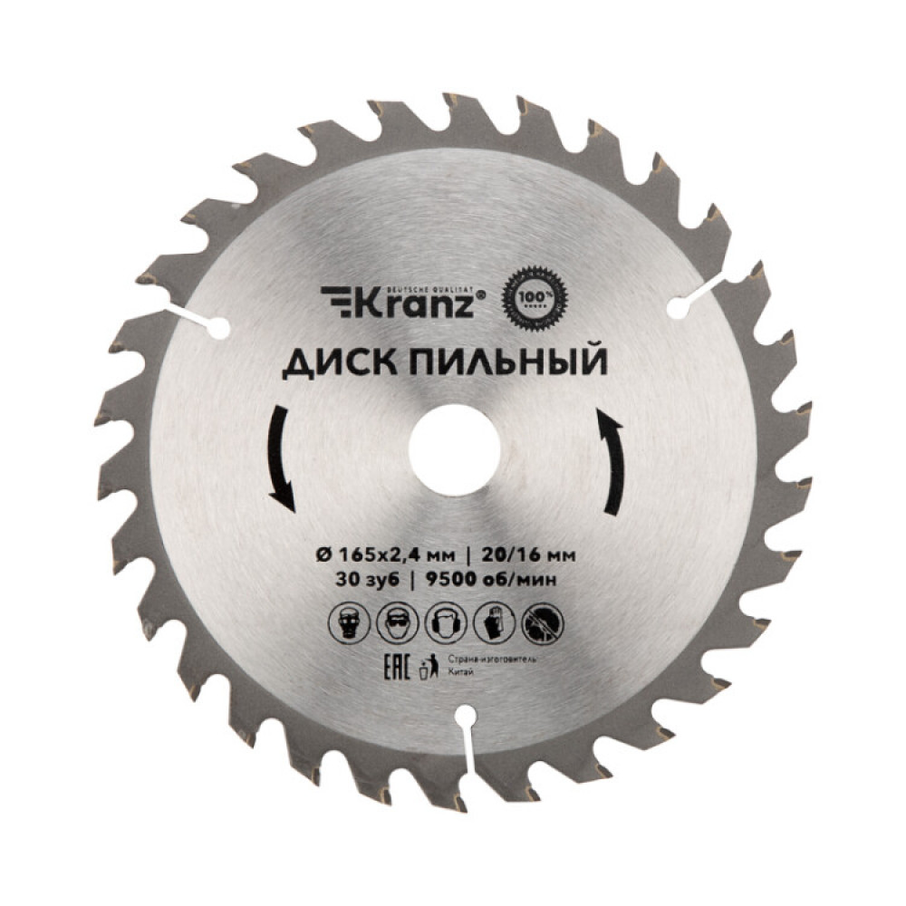 Описание Диск пильный 165 мм х 30 зуб х 20/16 мм KR-92-0106