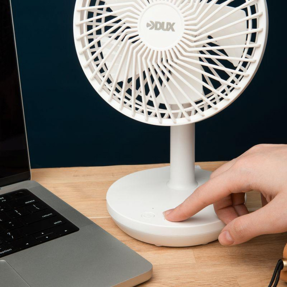 Настольный вентилятор DUX 4 скорости, питание USB, белый 60-0214 выполнен в компактных размерах и оптимально подходит для установки на рабочем столе.