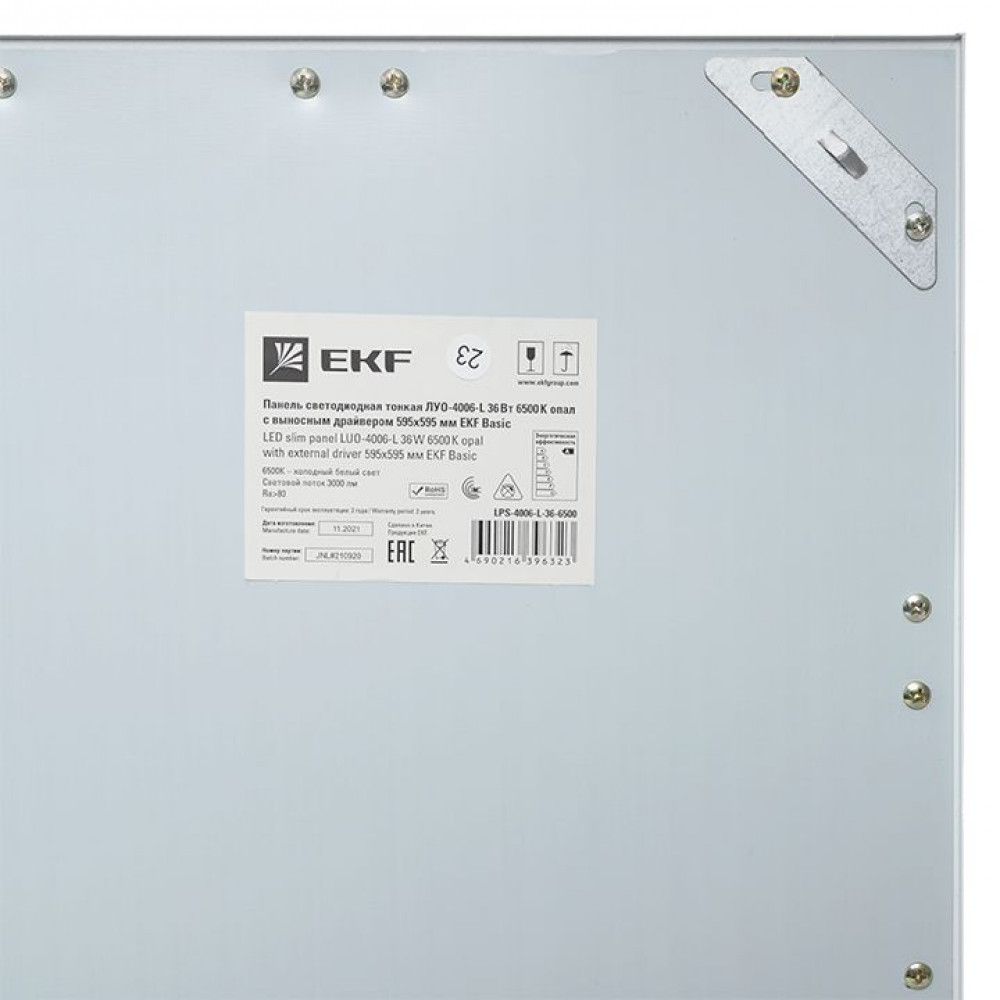Описание Панель светодиодная тонкая ЛУО-4006-L 36Вт 6500К IP40 опал белая без драйвера EK LPS-4006-L-36-6500