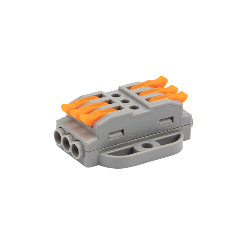 Клемма СМК 222-423P проходная 3 полюса, с монтажной площадкой (0,08-4 мм2), серая 07-6263, Строительно-монтажная клемма и скрутка