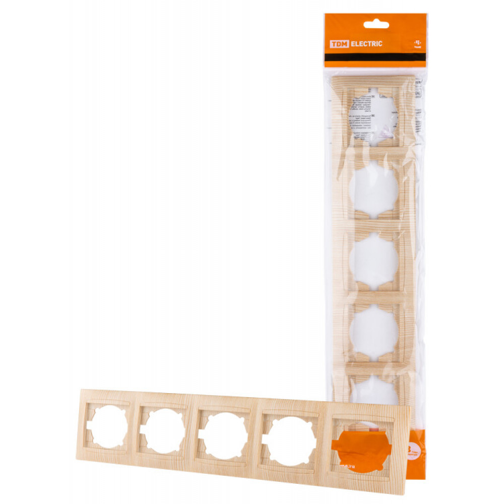 Рамка 5-ти постовая горизонтальная сосна "Лама" SQ1815-0337, Аксессуар для скрытого монтажа
