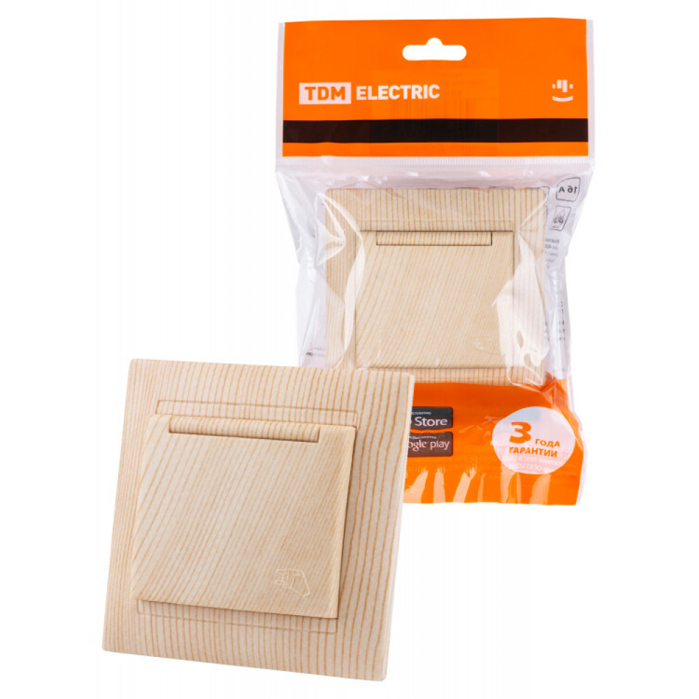Розетка 2П+З 16А 250В IP44 с крышкой сосна "Лама" SQ1815-0326, Розетка скрытого монтажа