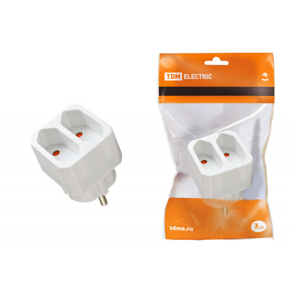 Блок на 2 гнезда 2П 2,5 А 250 B под плоскую вилку белый SQ1806-0206, Удлинитель, сетевой фильтр
