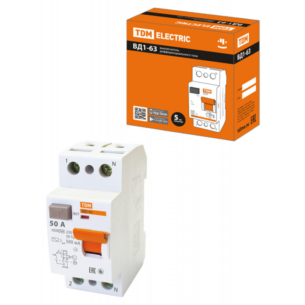 Доставка УЗО ВД1-63 2Р 50А 500мА SQ0203-0094