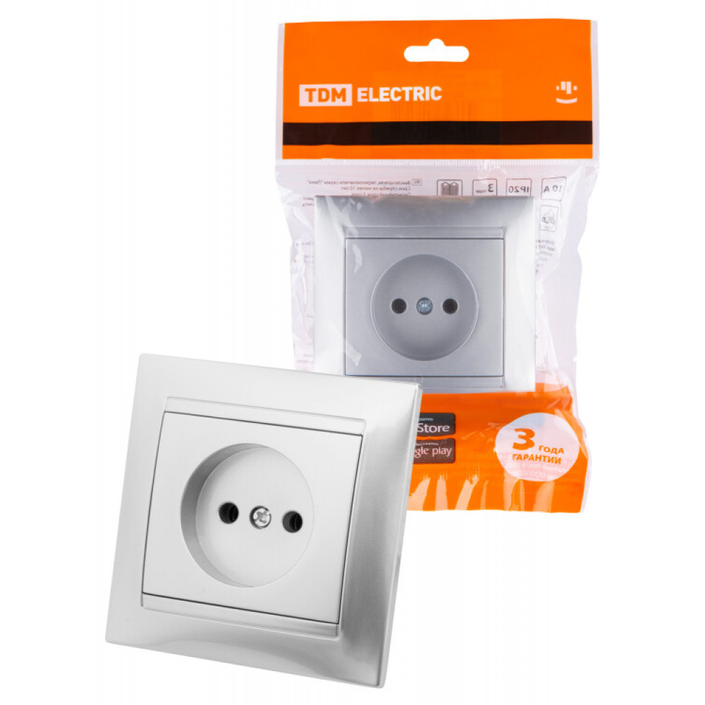 Описание Розетка 2П 10А 250В серебр. металлик "Лама" SQ1815-0222