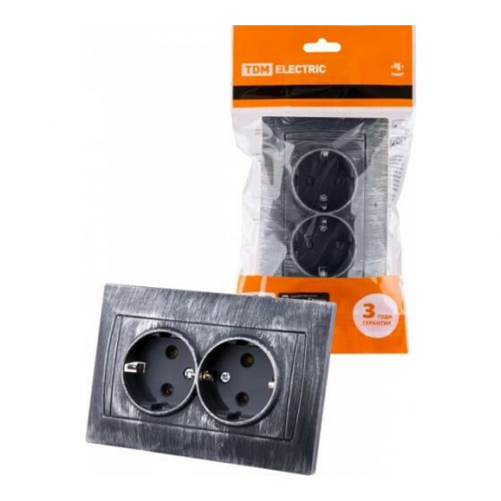 Доставка Розетка двойная 2П+З 16А 250В с защ. шт. старинное серебро "Лама" SQ1815-0654