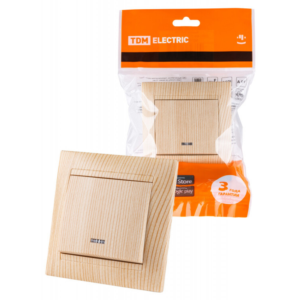 Доставка Выключатель 1 кл. с подсветкой 10А сосна "Лама" SQ1815-0304