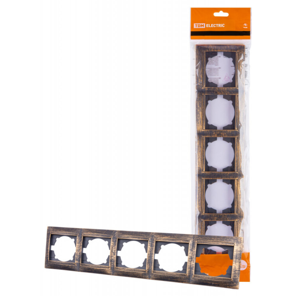 Рамка 5-ти постовая горизонтальная старинная бронза "Лама" SQ1815-0782, Аксессуар для скрытого монтажа