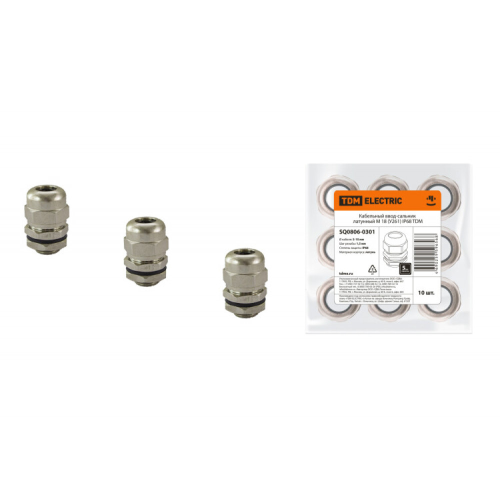 Описание Кабельный ввод-сальник латунный М 18 (У261) IP68 SQ0806-0301