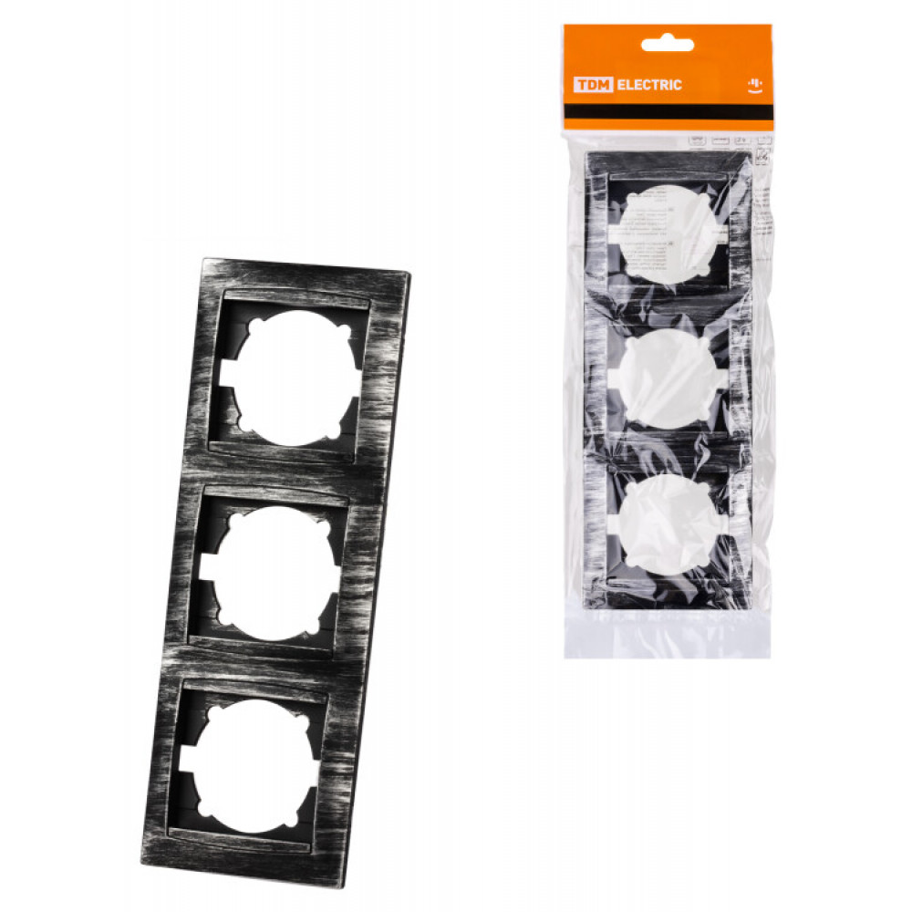 Рамка 3-х постовая вертикальная старинное серебро "Лама" SQ1815-0684, Аксессуар для скрытого монтажа