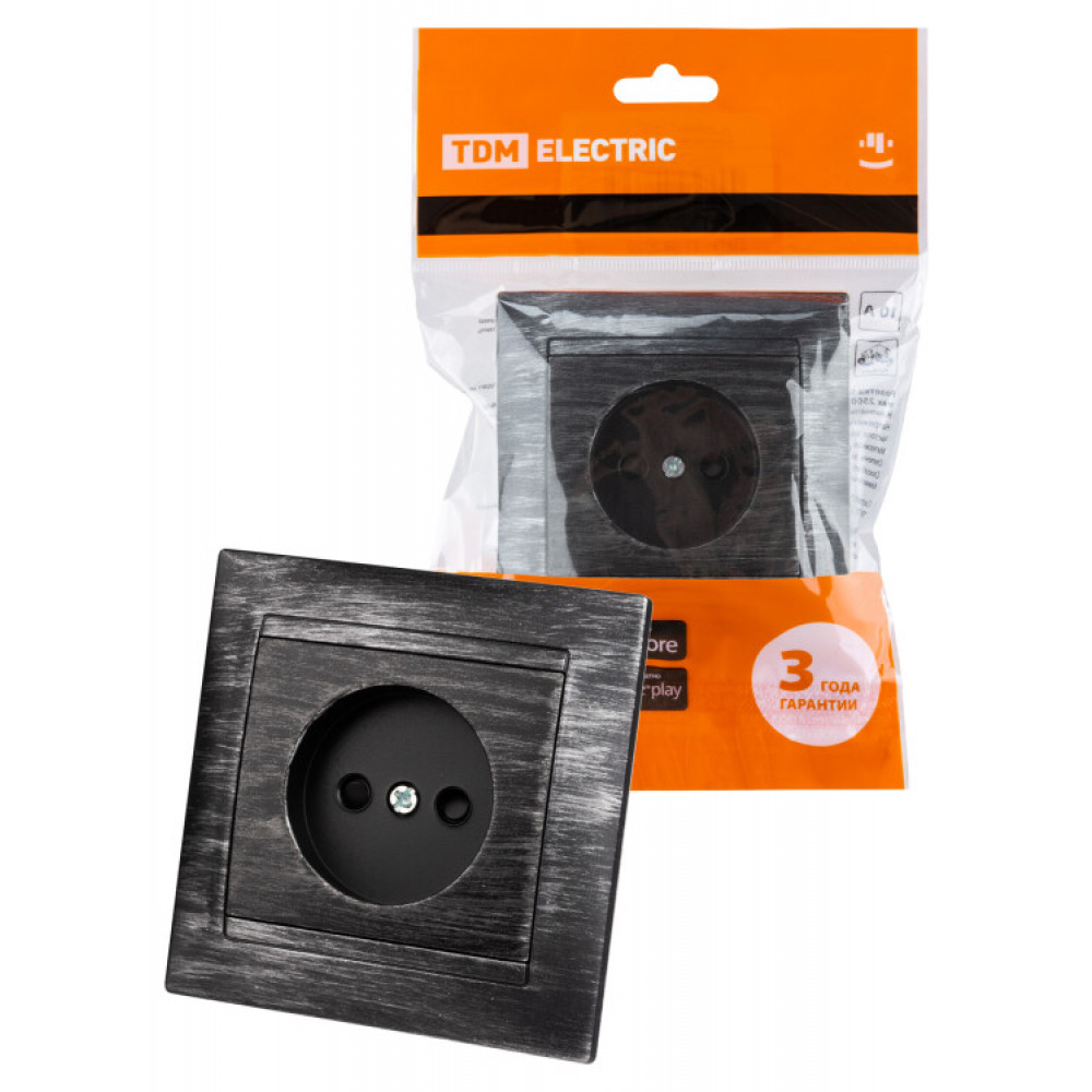 Розетка 2П 10А 250В с защ. шт. старинное серебро "Лама" SQ1815-0651, Розетка скрытого монтажа