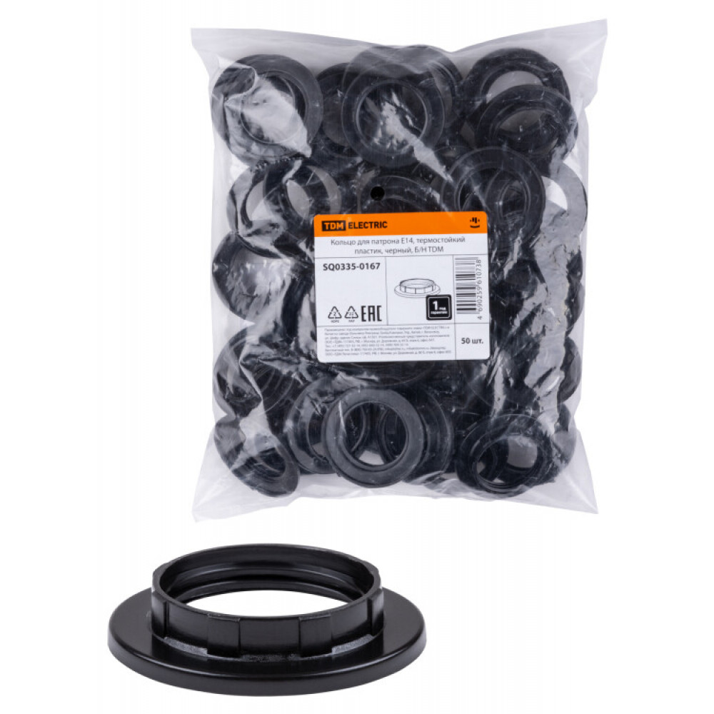 Описание Кольцо для патрона Е14, термостойкий пластик, черный, Б/Н SQ0335-0167