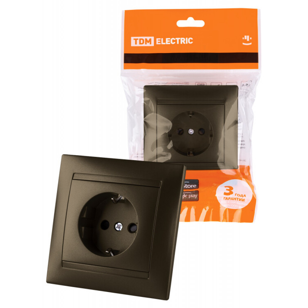 Описание Розетка 2П+З 16А 250В с защ. шт. бронза "Лама" SQ1815-0711