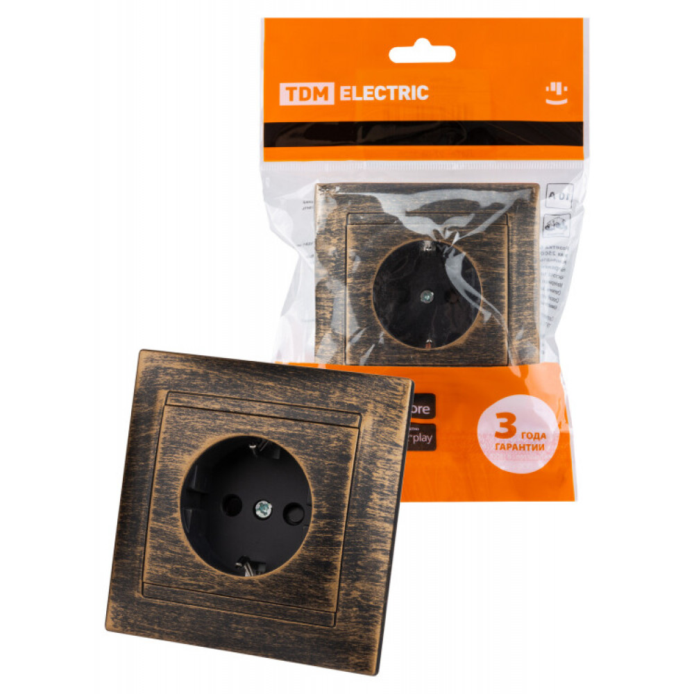 Розетка 2П+З 16А 250В с защ. шт. старинная бронза "Лама" SQ1815-0752, Розетка скрытого монтажа