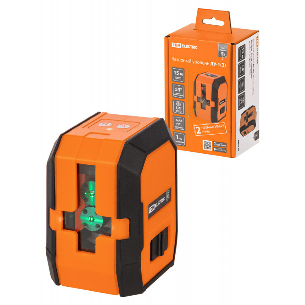 Описание Лазерный уровень ЛУ-1(З), 15 м ± 1 мм/5 м, два луча, 520 нм, зеленый луч, резьба 1/4, «Гранит» SQ1018-0301