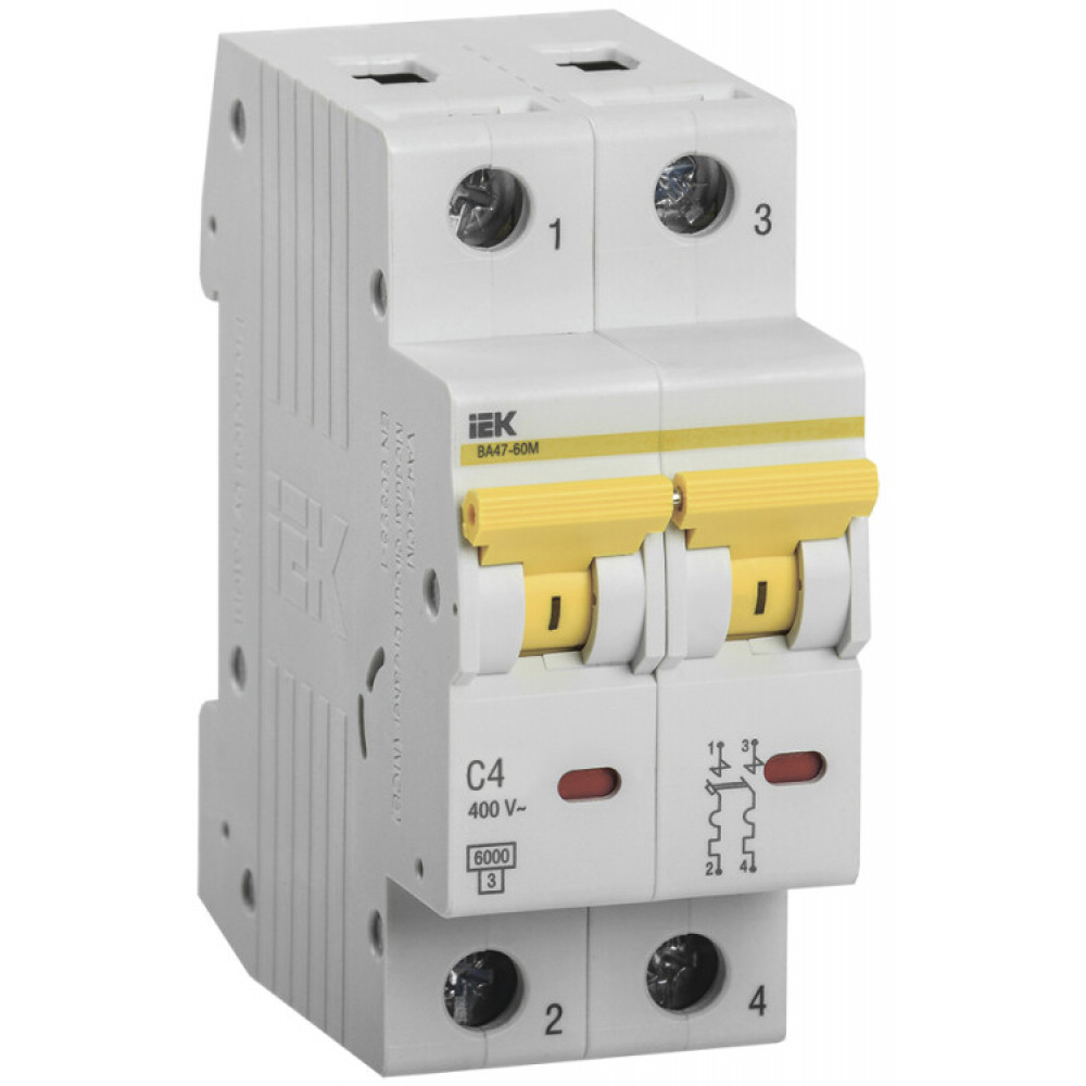 Автоматический выключатель ВА47-60M 2Р 4А 6кА С MVA31-2-004-C, Выключатель автоматический модульный