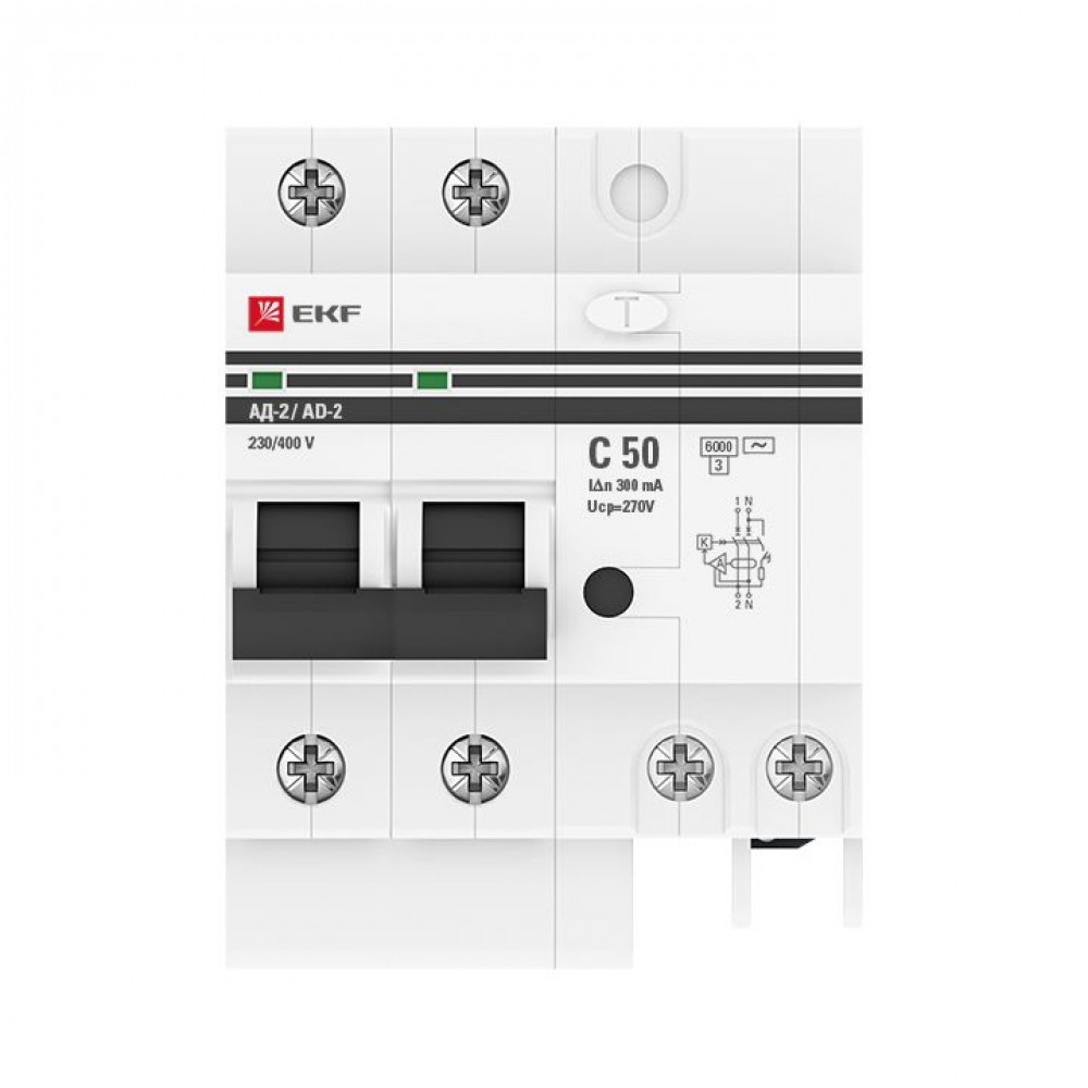 Описание Дифференциальный автомат АД-2 50А/300мА (хар. C, AC, электронный) 6кА PROxima DA2-6-50-300-pro