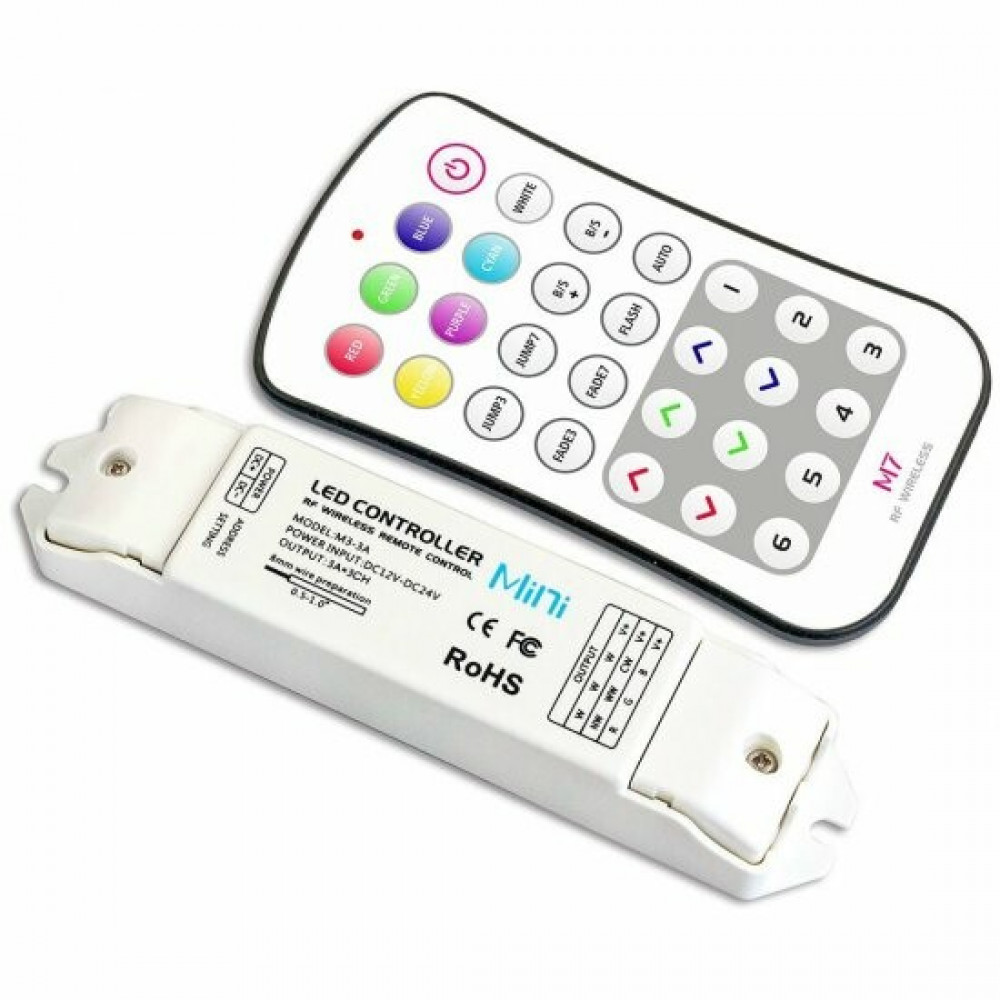 Описание RGB контроллер для светодиодной ленты Varton 12-24 V IP20 135x30x20 мм c пультом, радиус 45 м (LTECH) M7+M3-3A