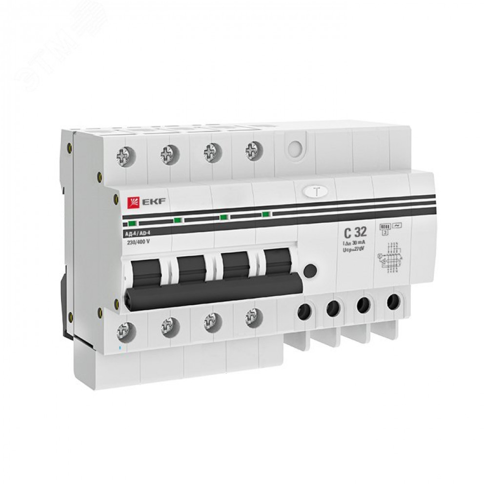 Описание Дифференциальный автомат АД-4 32А/ 30мА (хар. C, AC, электронный) 6кА PROxima DA4-6-32-30-pro