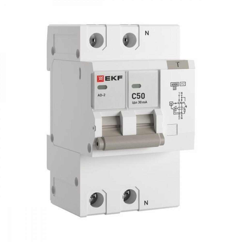 Описание Дифференциальный автомат АД-2 50А/ 30мА (хар. C, AC, электронный) 6кА PROxima DA2-6-50-30-pro