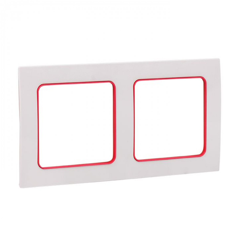 Стокгольм Рамка 2-местная белая с линией цвета красный PROxima EXM-G-305-20, Аксессуар для скрытого монтажа