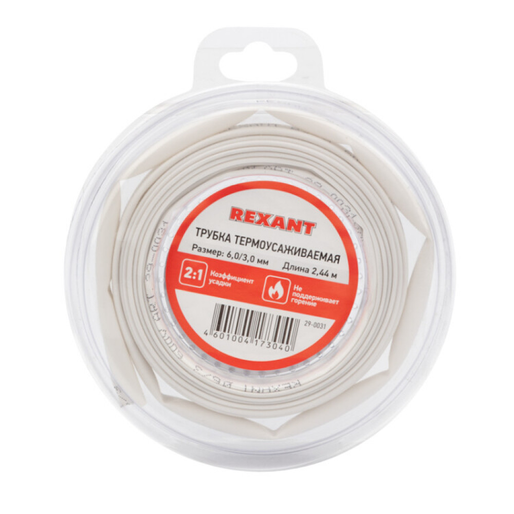 Доставка Трубка термоусадочная ТУТ нг 6,0/3,0 белая, ролик 2,44м , термоусаживаемая трубка в удобной компактной упаковке, не поддерживает горение