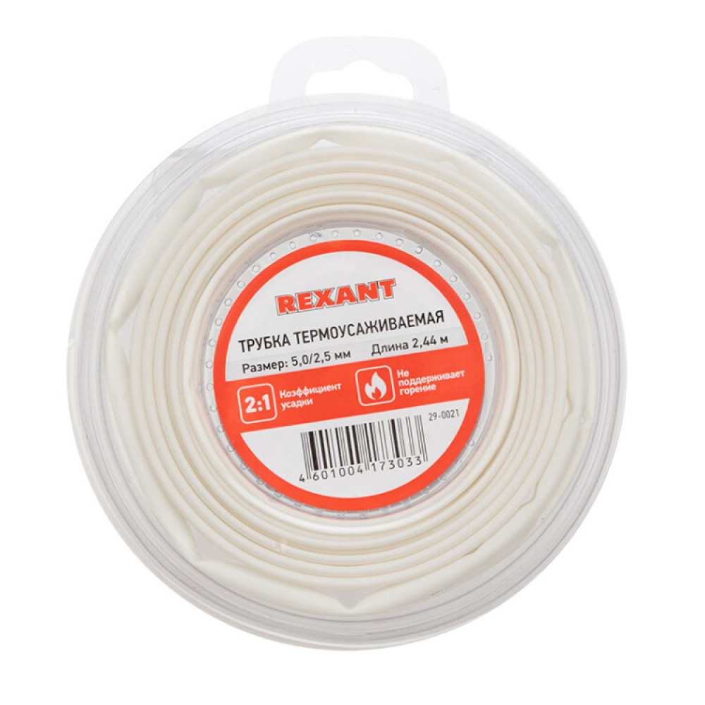 Трубка термоусадочная ТУТ нг 5,0/2,5 белая, ролик 2,44м, термоусаживаемая трубка в удобной компактной упаковке, не поддерживает горение