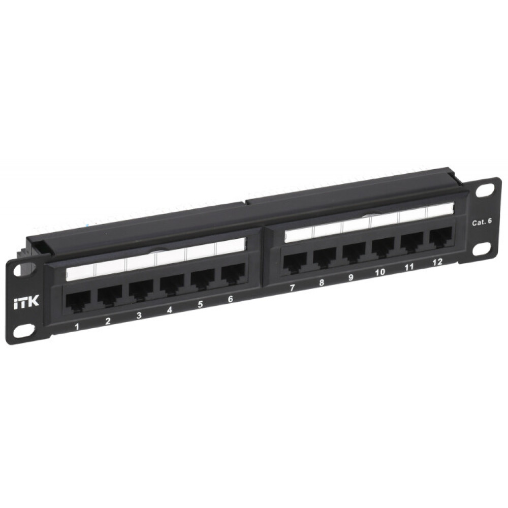 Патч-панели для монтажа в шкаф 10" (254мм) имеют отверстия с левой и правой стороны для крепления на профиль, производятся высотой 0,5 или 1 юнит. На передней стороне все патч-панели ITK имеют специальную площадку для дополнительной маркировки и цифровую нумерацию портов. На обратной стороне модули IDC имеют цветовую и цифровую нумерацию. Также для облегчения монтажа и укладки кабелей выпускаются модификации с кабельным органайзером.
